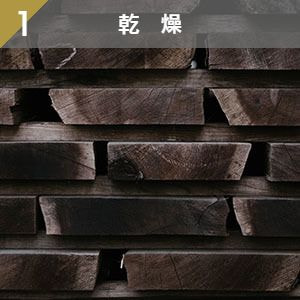 まずは屋外で約 6 ヶ月間自然乾燥をさせ、平衡含水率(15%程度)まで下げます。天然乾燥後、人工乾燥機で含水率 8%近くまで乾燥させて使用します。