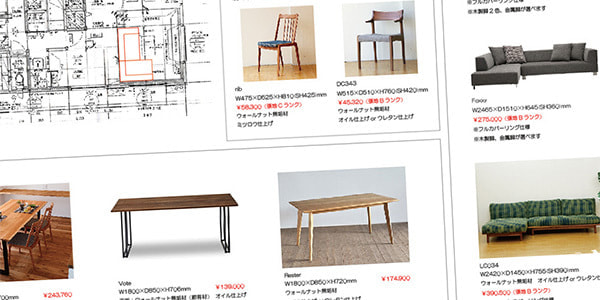 作成したプランニングボードをもとに、実際に家具をご覧いただきながら細かなご提案をさせていただきます。