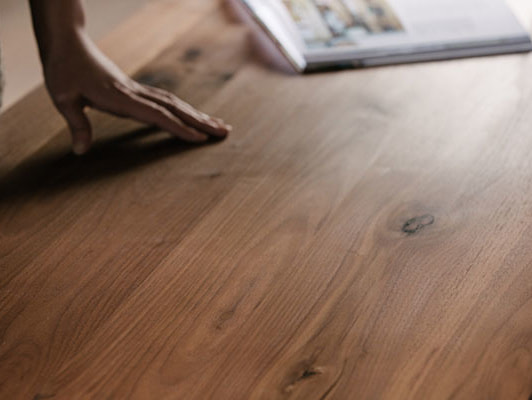家具の表面仕上げには、自然の植物油と植物ワックスからできた自然塗料オスモカラーを使用しております。木本来の自然な風合いを生かした仕上げでありながら撥水性にも大変 優れており、シミに強く安心してお使いいただけます。